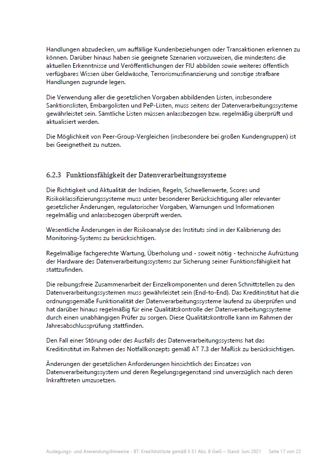 Die BaFin erwartet ausdrücklich, dass Kreditinstitute die Funktionsfähigkeit ihrer Monitoring-Systeme regelmäßig überprüfen und dokumentieren.